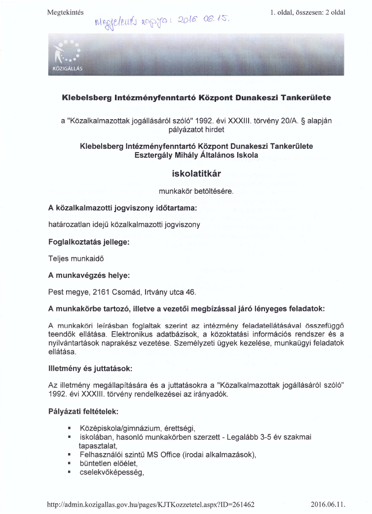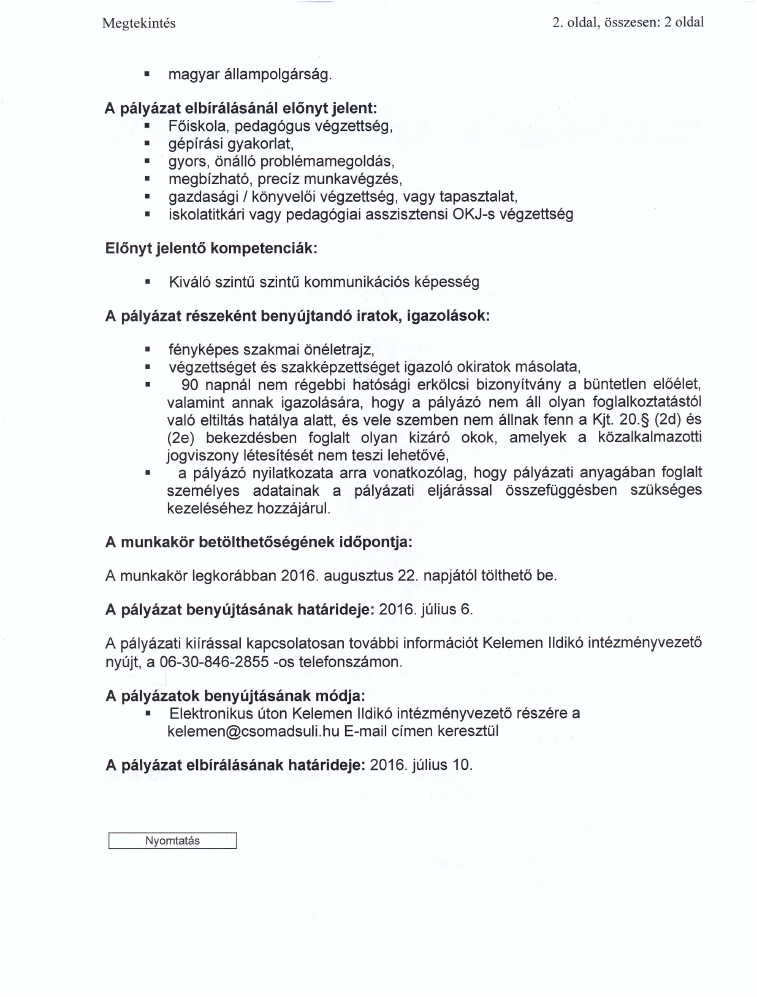 Álláshirdetés