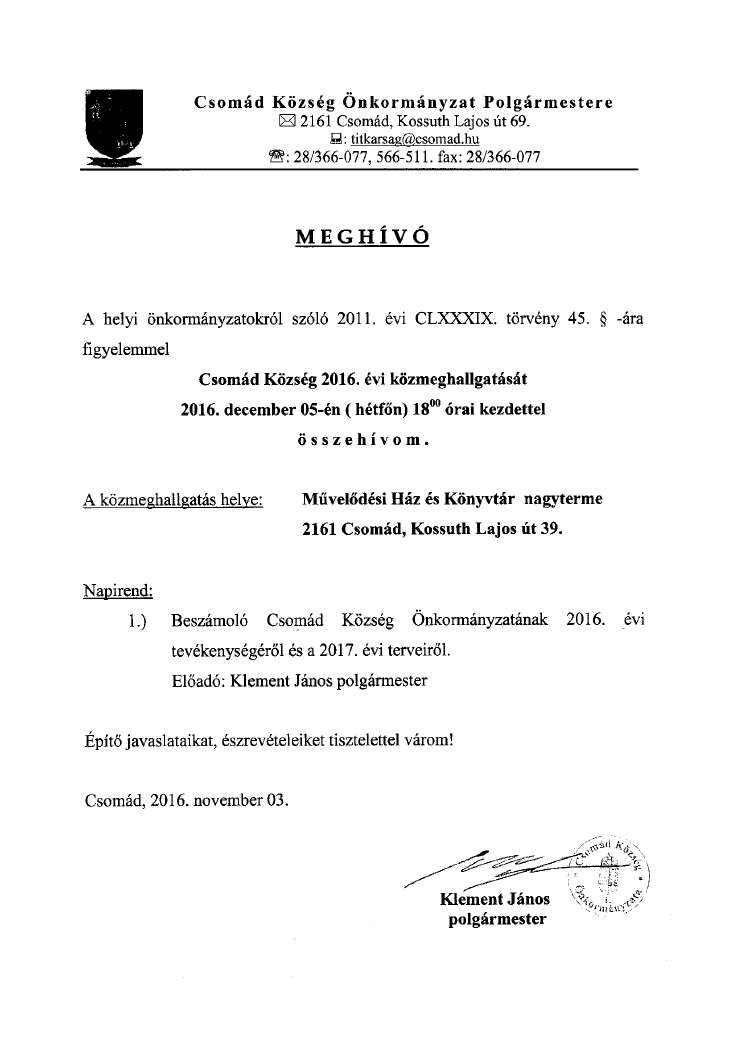 Csomád Község Önkormányzatának