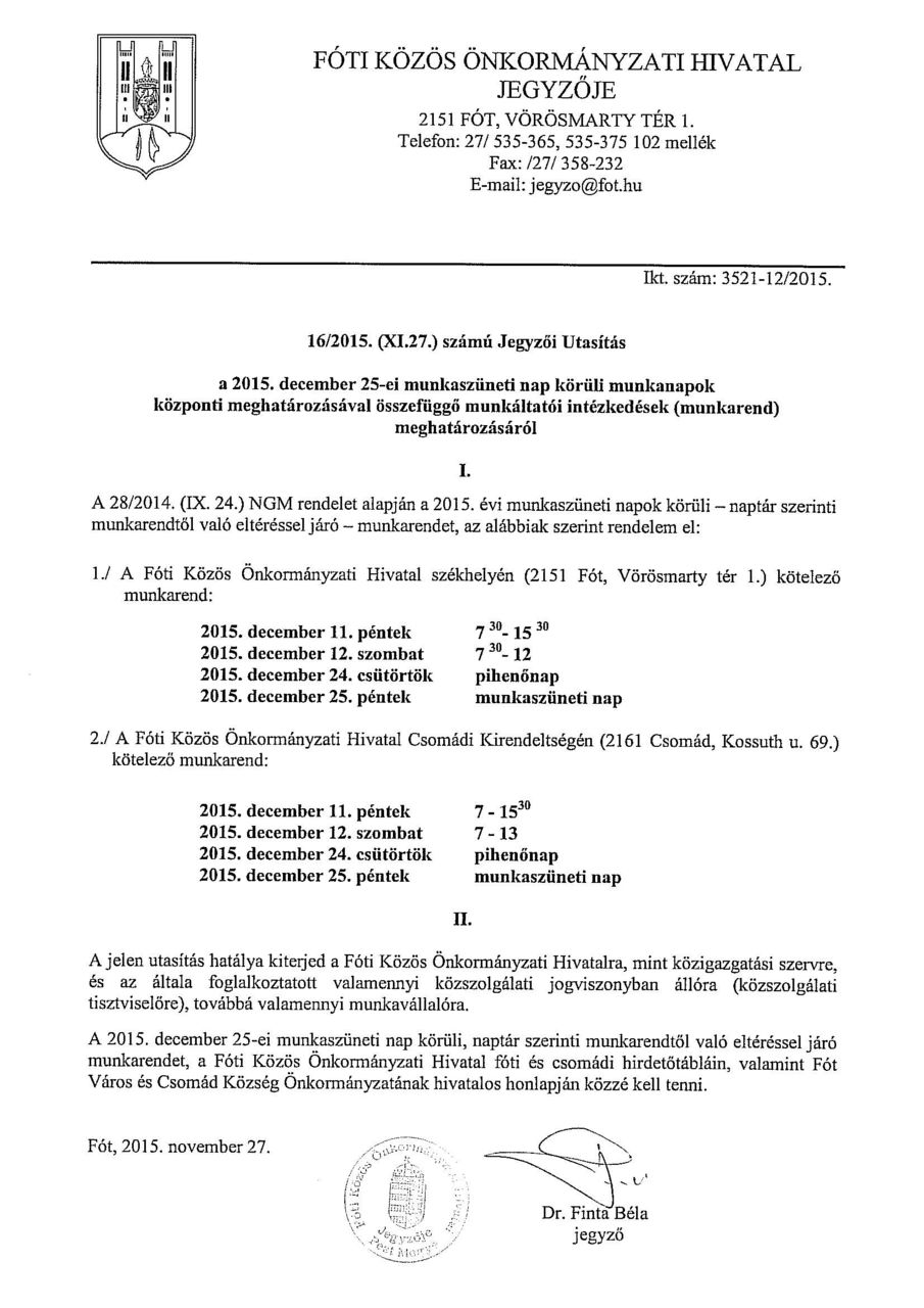 Jegyzői utasítás