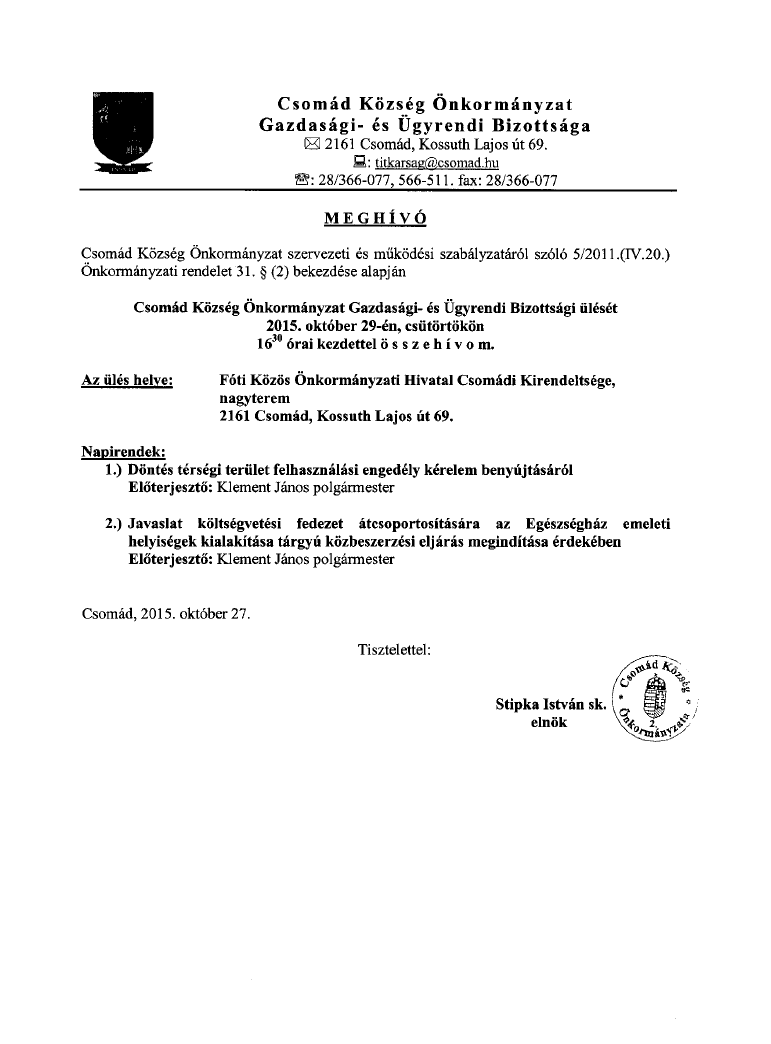 Meghívó Gazdasági-és Ügyrendi Bizottsági ülésre