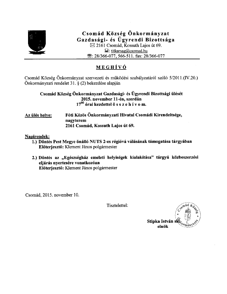 Meghívó Gazdasági-és Ügyrendi Bizottsági ülésre