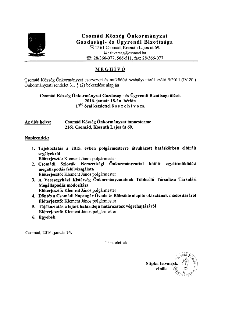Meghívó Gazdasági-és Ügyrendi Bizottsági ülésre