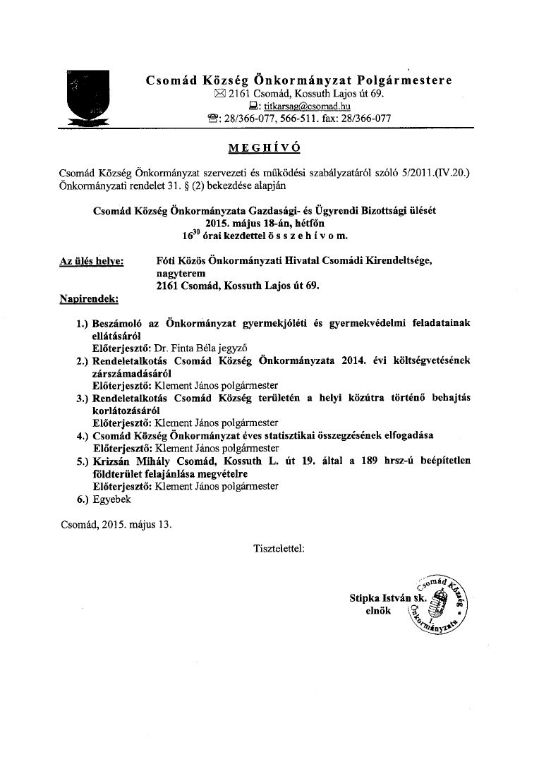 Meghívó Gazdasági-és Ügyrendi Bizottsági ülésre