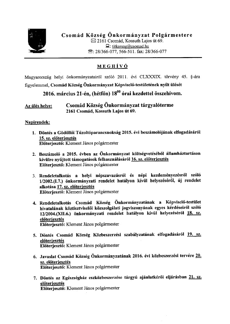 Meghívó Képviselő-testületi ülésre