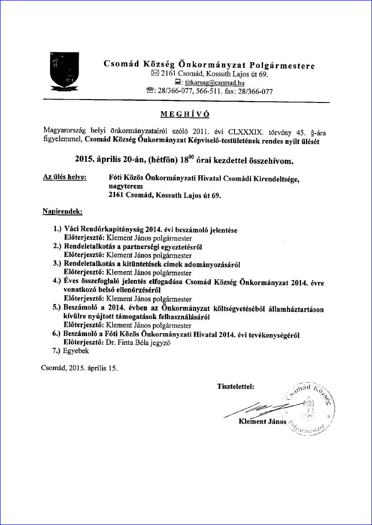 Meghívó Képviselő-testületi ülésre