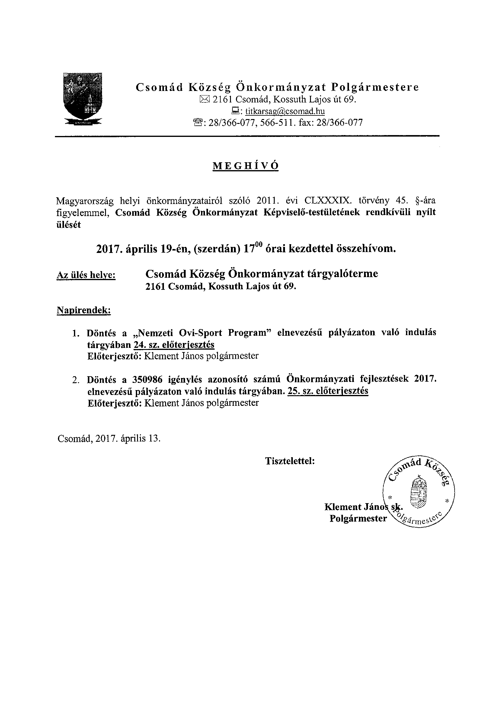 Csomád Község Önkormányzatának
