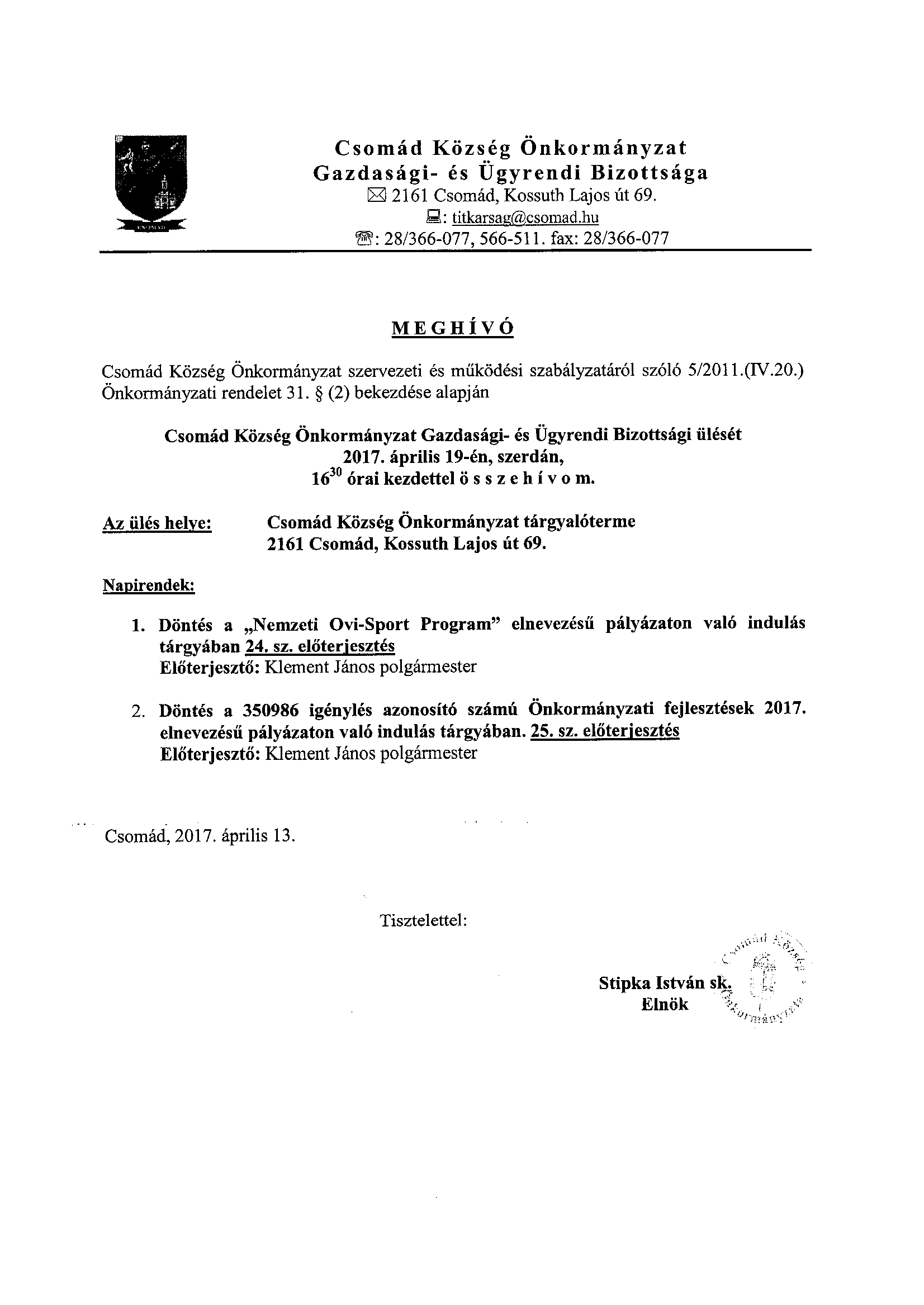 Csomád Község Önkormányzatának