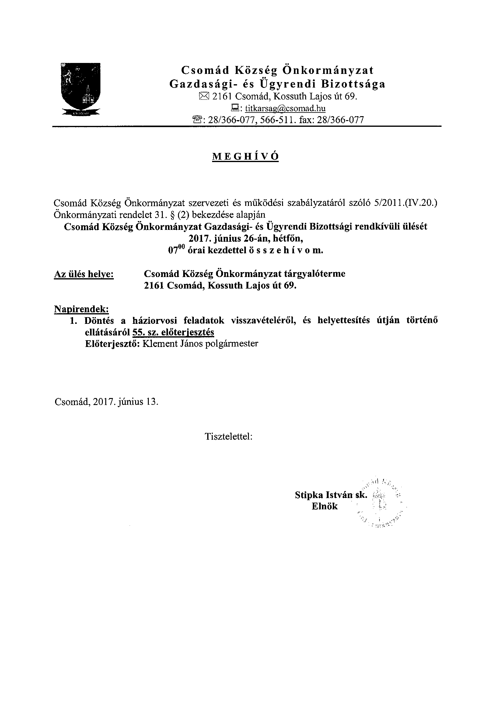 Csomád Község Önkormányzatának