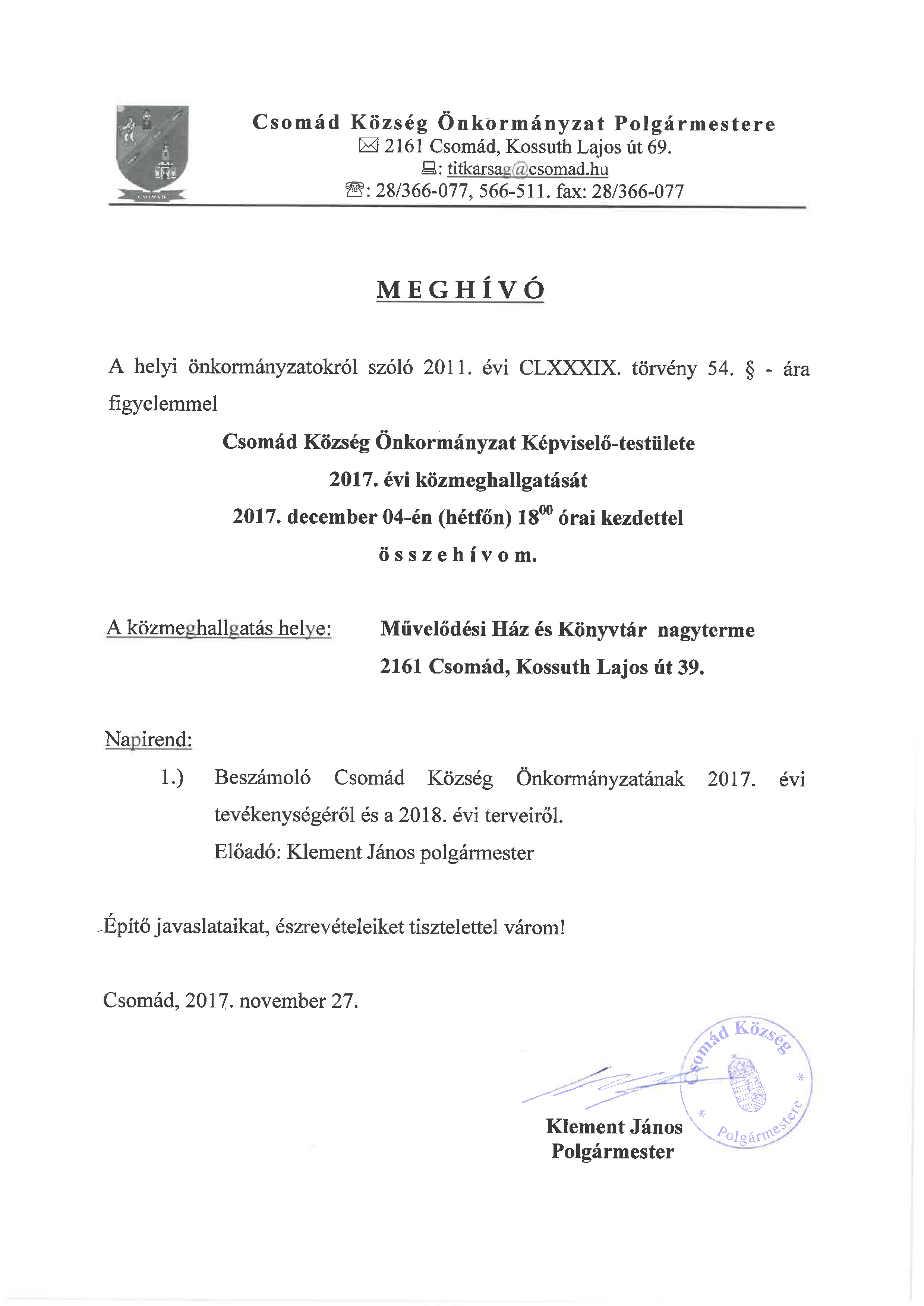 Csomád Község Önkormányzatának