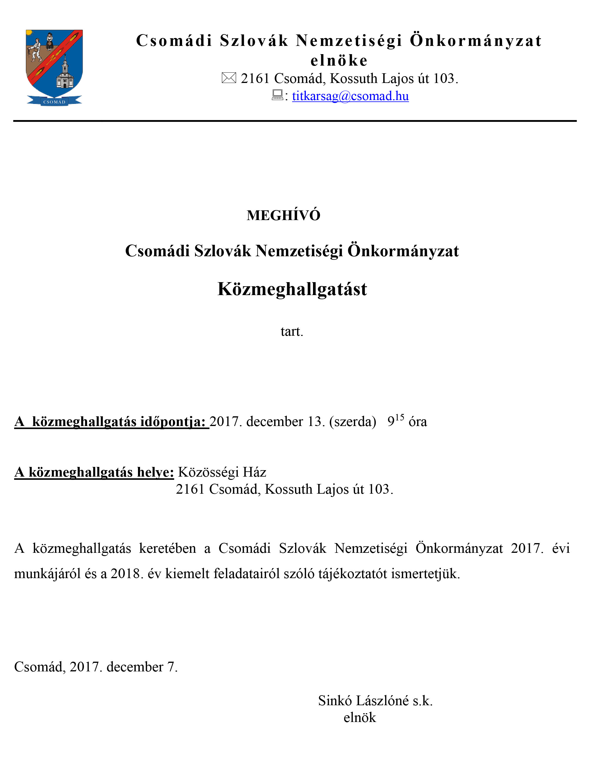 Csomád Község Önkormányzatának