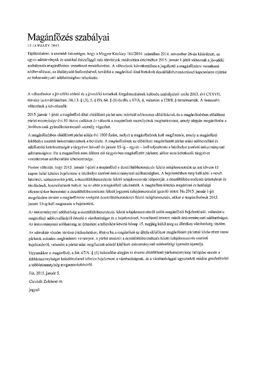 Tájékoztató - Magánfőzés szabályai