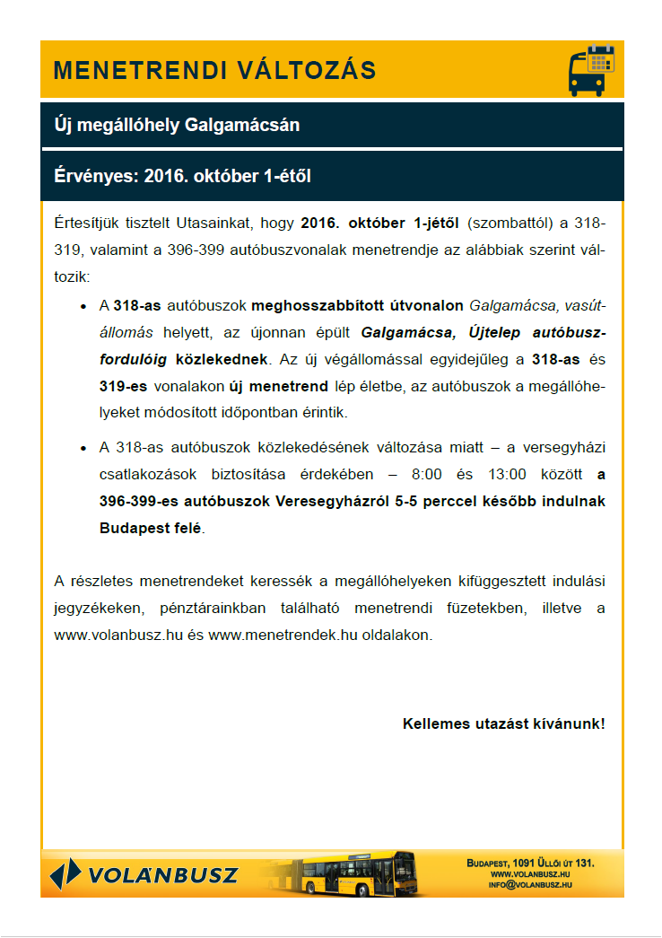 Volán Menetrend változás
