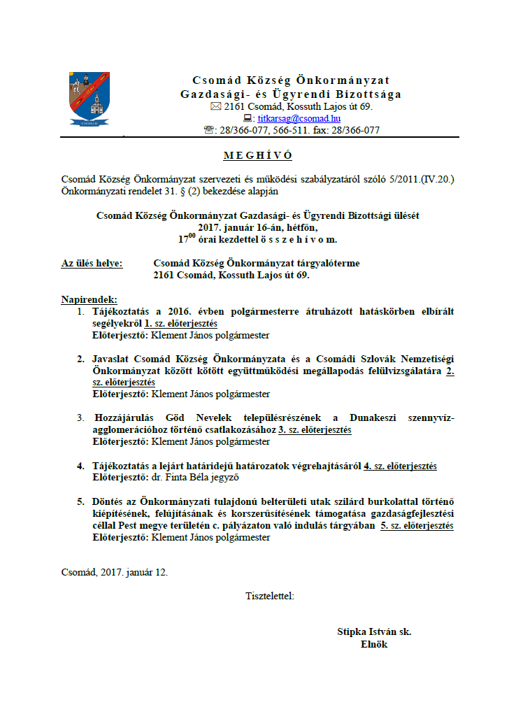 Meghívó Gazdasági-és Ügyrendi Bizottsági ülésre