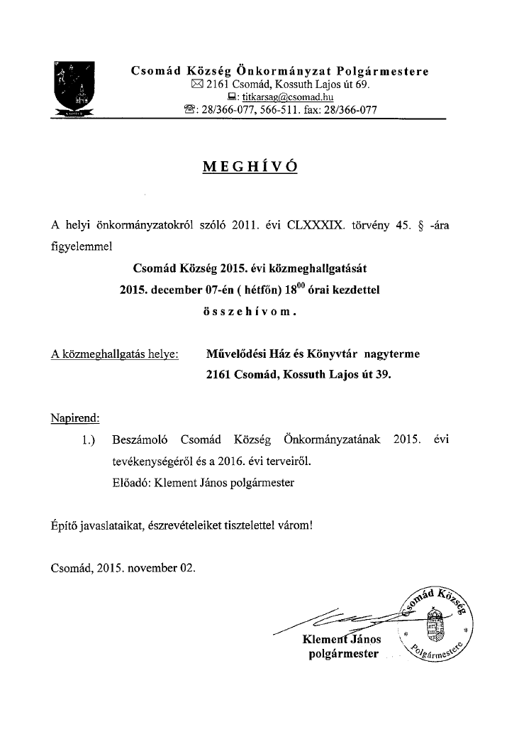Meghívó Gazdasági-és Ügyrendi Bizottsági ülésre